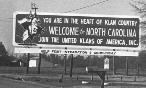 I was in Smithfield, NC and there was a full sized billboard tha said, in part, “Welcome…this is KKK country…”