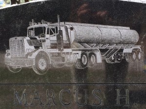 Other memorials speak to vocations other than working on the water, like driving big rigs….