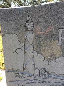 One of lighthouse grave markers will break your heart, though. This etching adorns the headstone of a very winsome 9-year-old boy. The marker includes a photograph of him in a baseball cap.
