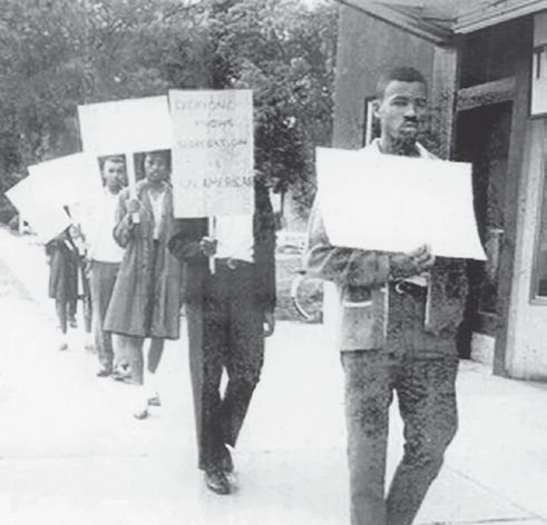 A protest against racial segregation at the Levon Theater, Enfield, N.C., in 1963. From The Nine O’Clock Whistle