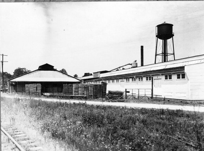 The Roanoke River and the company’s wharf is on the other side of the plant. Down the road, but not visible in this photograph, was a section of company housing called White City.