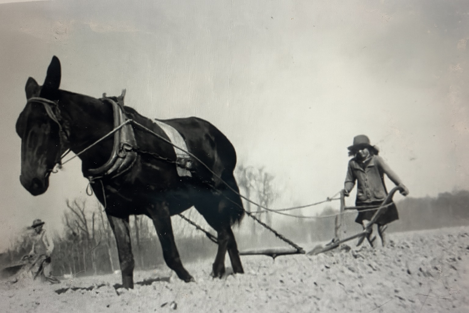 As was the case with many farmers during World War II, the Walters were probably short on labor or young Ada would not be working behind a mule.