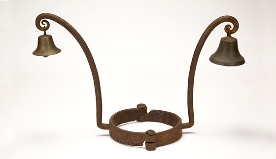 Allen Sidney was referring to an iron slave collar and bells like this one that was on display at the Bullock Museum in Austin, Texas. It was part of a traveling exhibition called “Purchased Lives: The American Slave Trade from 1808 to 1865,” produced by The Historic New Orleans Collection.