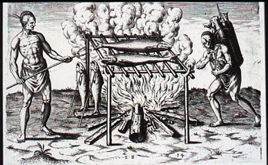 From The Waterman’s Song: “… it was the colonists’ slaves who best watched and learned from the Indian fishermen. They discovered what late winter day to abandon hunting camps to harvest the great waves of spawning shad that migrated out of the Atlantic into Pamlico and Albemarle Sounds. They learned what lunar tide beckoned the bottlenose dolphins into local inlets, in what current to erect a fishing weir, and what late summer wind shift marked the coming of the jumping mullet. `Being out of doors a great deal of the time,’ as a Chowan River slave named Allen Parker later wrote, the slaves ‘learned many things from the book of Nature, which were unknown to white folks.” (This is a Theodore De Bay engraving of coastal Algonquians, based on a John White drawing made ca. 1590. Courtesy North Carolina Collection, UNC-Chapel Hill.)