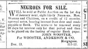 From my article “A Local History of Human Trafficking”: “Before the Civil War, human trafficking within Eastern North Carolina was commonplace. There were at least occasional slave markets in every village and town of any size. At that time, the buying and selling of enslaved laborers was incessant, constant and never ending; not the exception, but the rule. As Guion Grffis Johnson wrote in her 1939 masterpiece, Antebellum North Carolina: A Social History, `Slave traders, or speculators, as they were usually called, were constantly coming and going in every North Carolina community where the slave population was large. They bought slaves for the market in the Lower South or for any planter who might be in need of laborers.'” This notice of a slave auction appeared in a Wilmington newspaper, The Tri-Weekly Commercial, on January 1, 1852. At that time, there were far more enslaved African Americans in Wilmington than free people of any color.