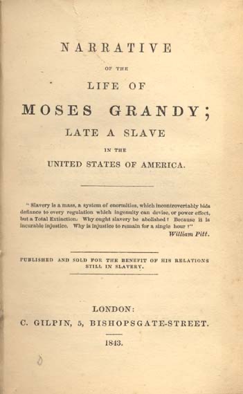 Moses Grandy was an enslaved waterman who grew up in Camden, a small port on the Pasquotank River in northeast N.C. Born in slavery in or about 1786, he was at different times a ferryman, a lighter captain, a deckhand on a sloop, captain of his own sailing vessel, a merchant seaman and a whaler. After gaining his freedom, he described his life in slavery in his Narrative of the Life of Moses Grandy; Late a Slave in the United States of America.