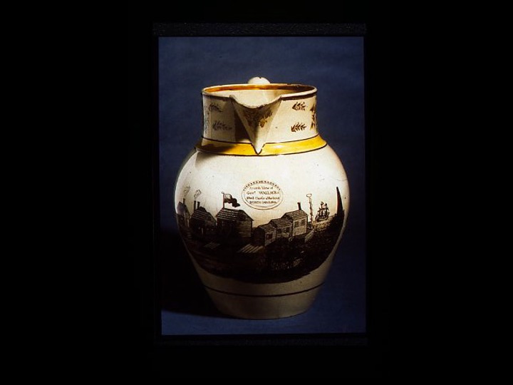 From The Waterman’s Song: “Slaves figured prominently among the watermen’s families at Ocracoke Inlet. In 1810 Portsmouth had a population of 225 whites, 115 slaves and one free black. That same year, Shell Castle Island [pictured in this ceramic engraving from ca. 1790) … had a population of 18 whites and 10 slaves. [Shell Castle] was also a way station for a larger number of slave river pilots, sailors, and lighter crews who sailed ack and forth between the inlet and ports inland. . . . In the spring of 1831, approximately 30 slaves, purportedly including the entire male slave population of Portsmouth village, confiscated a schooner and fled north into the Atlantic, their flight cut off only by an unseasonably late nor’easter that disabled their vessel.” Photograph courtesy, North Carolina Museum of History